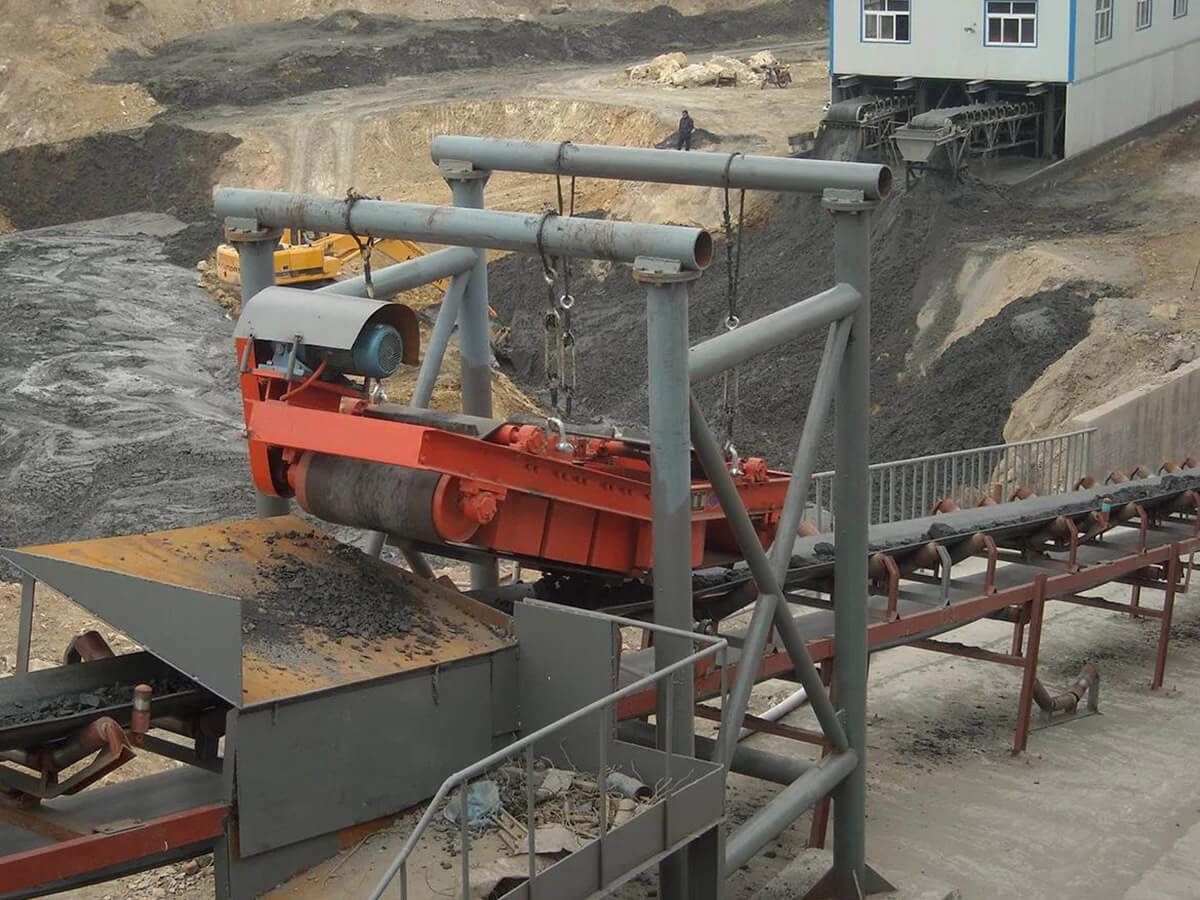 When material passes under or inside the separator, iron impurities are adsorbed onto the magnetic pole surface, and then discharged manually or automatically by an unloading device (such as a belt conveyor or rotary scraper), achieving continuous iron removal.